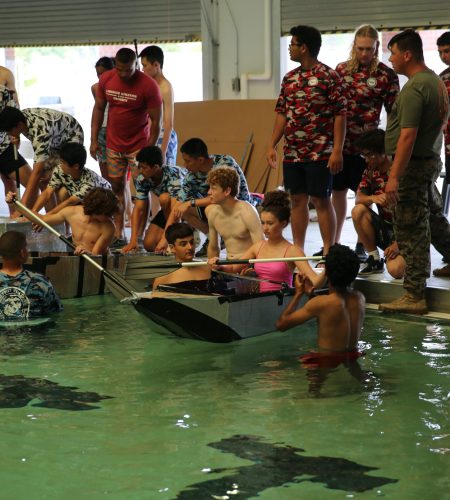 Squads jumped right into their concrete beam design and construction, popsicle stick bridge design, and of course, what would a Navy Camp be without the popular cardboard boat build and race competition. The NAVSEA SeaPerch activity challenged campers to build and pilot an underwater Remotely Operated Vehicle (ROV). Campers spent time at the Seabee Museum and at NAVAIR (Naval Air Station) Point Mugu, and VIPs shared experiences with the campers throughout the busy week. The STEM camp at Port Hueneme ended with the Seabee Olympics competition and later, the awards ceremony and dinner rounded out its very full, and very successful week.